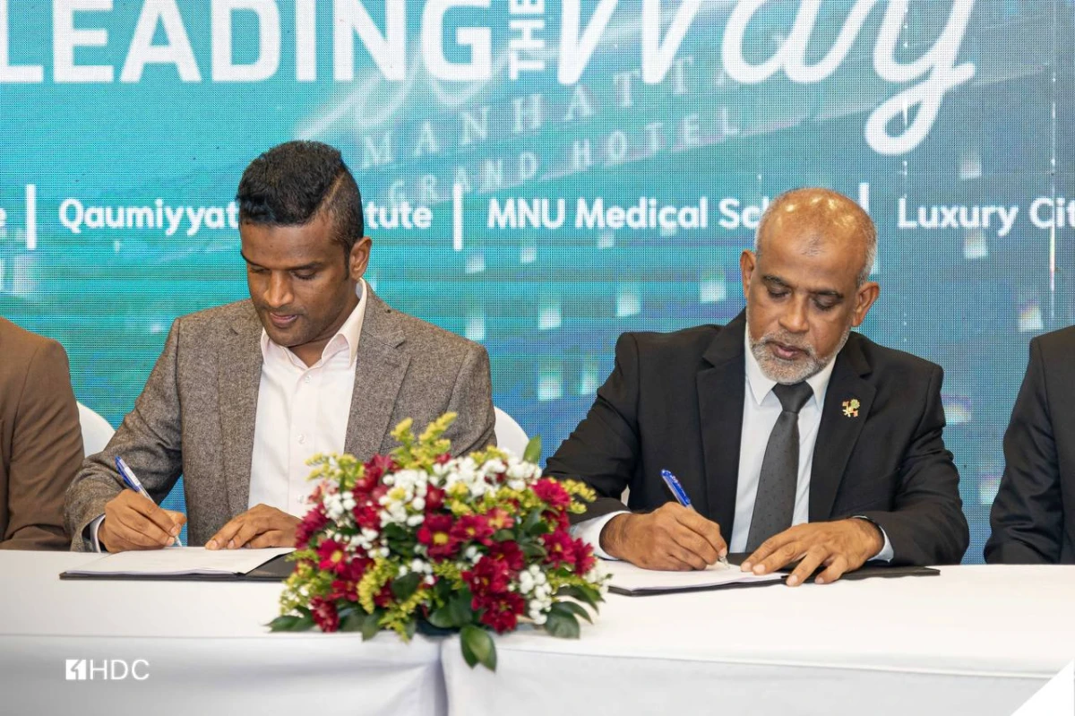 The agreement was signed on Wednesday at a ceremony held at Meeruma Event Hall. HDC Managing Director Ali Zuhair and Deputy Managing Director Mohamed Asbah Ali Naseer signed on behalf of the corporation, while World of Business was represented by Managing Director Ibrahim Naeem, Chief Executive Officer Fahiyas Pangath, and Chief Operating Officer Ali Nahiz.