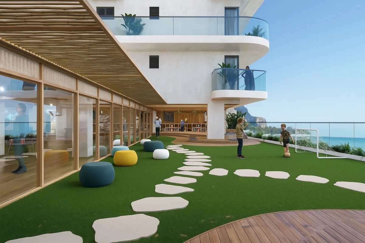 A dedicated 2,500-square-foot children's play area features modern, safety-certified equipment. Furthermore, the expansive 24,000-square-foot terrace garden, THE LARGEST in the Maldives, offers a perfect urban oasis for children to play outdoors in the fresh air and natural light, fostering a healthy and active lifestyle.
