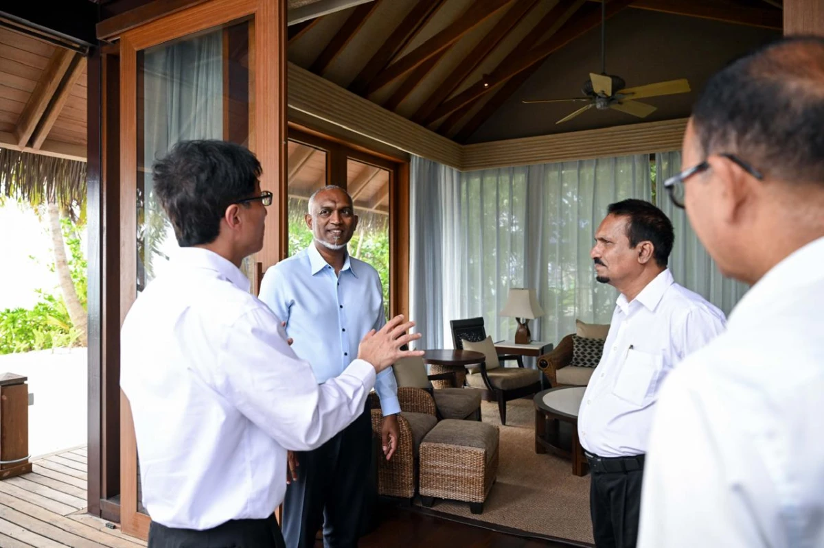 Following the briefing, President Dr Muizzu was given a guided tour of the resort. He was accompanied by senior officials from the Ministry of Tourism and the Ministry of Environment, Cabinet Ministers, and several Members of Parliament representing the constituency.