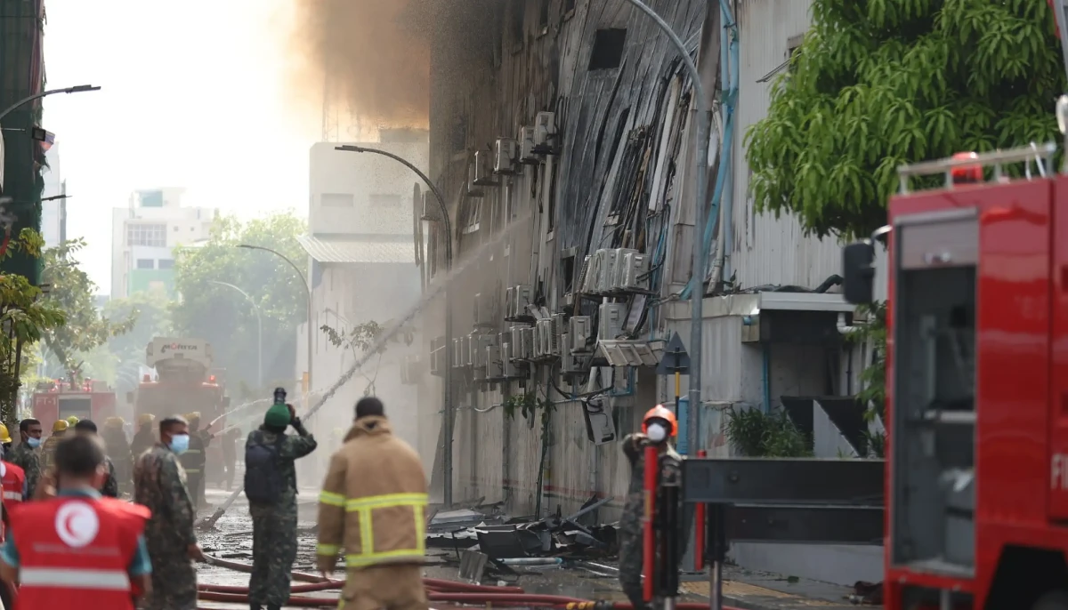 A fire broke out early Thursday morning at the Housing Ministry building in Malé, starting at approximately 7:30 am. The fire has severely impacted the entire building.