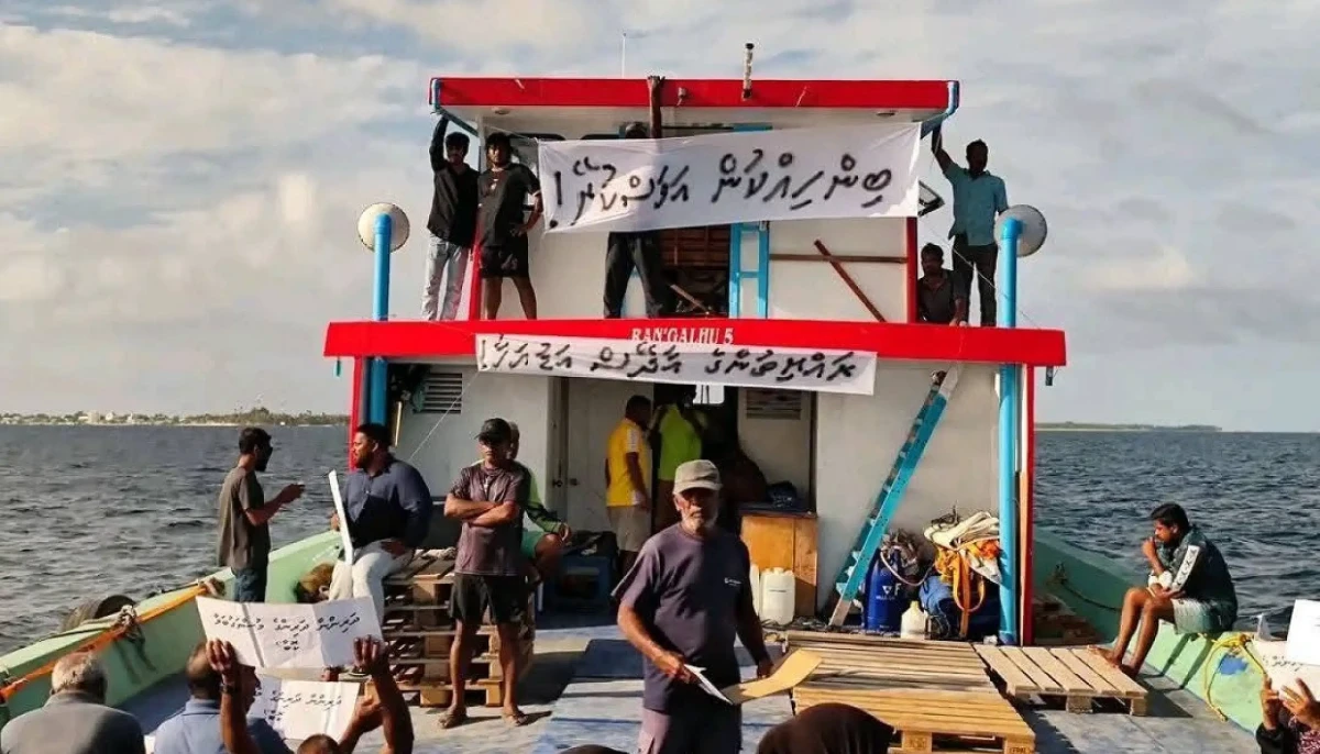 On Thursday, Dhonfanu Council announced a temporary ban on diving within 700 metres of the island’s reef, citing the ongoing protests. The council said it would report violations to the relevant authorities.