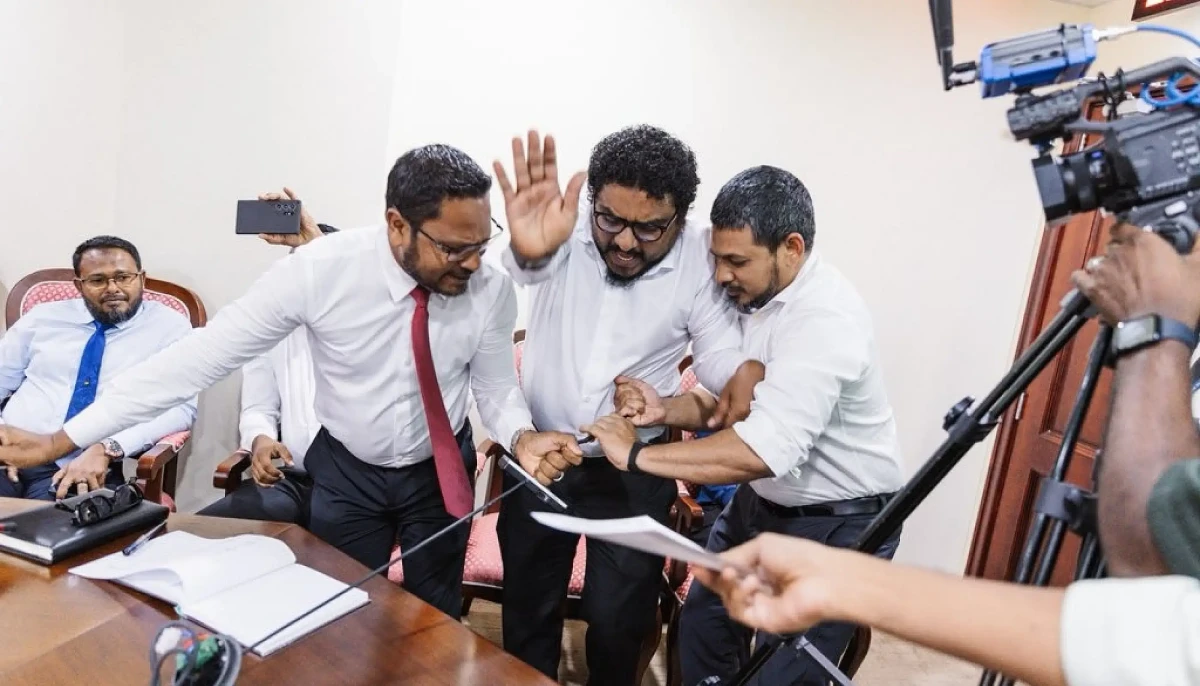 The incident occurred on 15 September, during the committee’s discussion on the media regulation bill. According to accounts of the meeting, Kendhoo MP Mauroof Zakir of the Maldivian Democratic Party (MDP), who is not a member of the committee, turned on a committee microphone and began to speak.