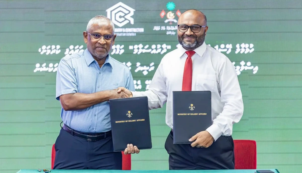 A signing ceremony was held at the Islamic Centre. Islamic Minister Dr Mohamed Shaheem Ali Saeed signed on behalf of the government, while Managing Director Ibrahim Rasheed signed for RCC.