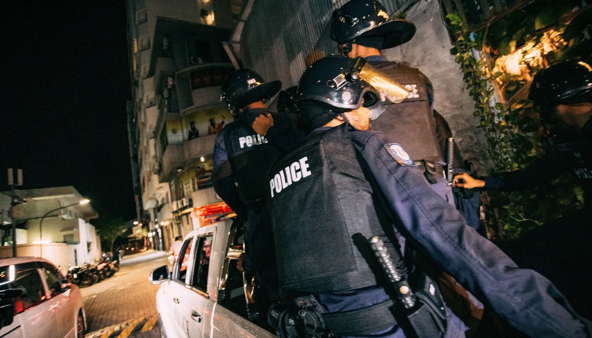 A police officer is under investigation for allegedly threatening a child during a football match on an island in central Maldives.
