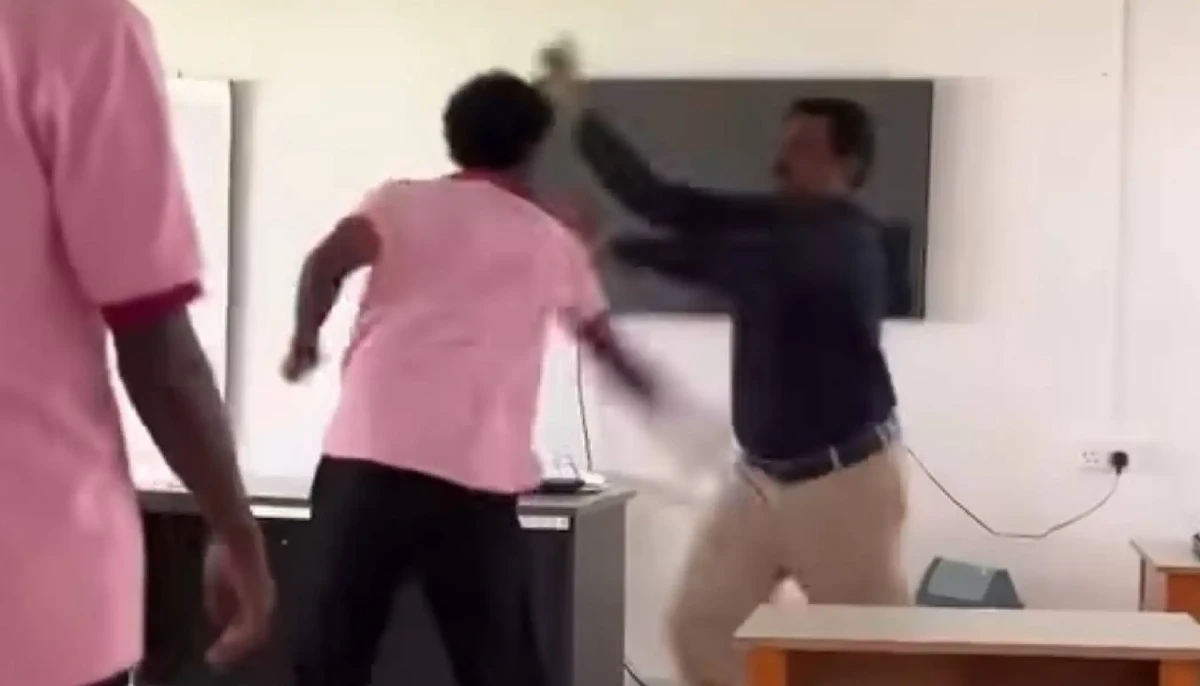 According to information received, the incident took place between a Grade 12 student and a male teacher from India. A student in the classroom recorded the incident on a mobile phone. The video is now circulating on social media.