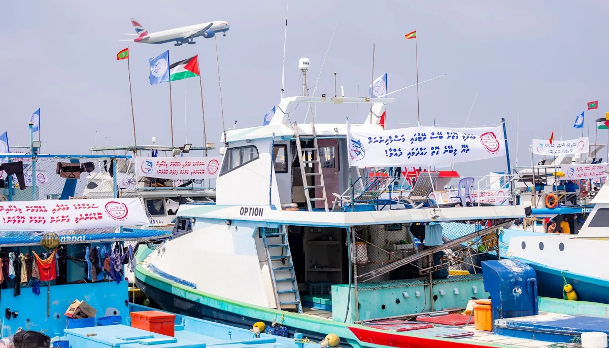 Fishing vessels taking part in the protest departed from Kanneli Jetty in Hulhumalé on Wednesday.