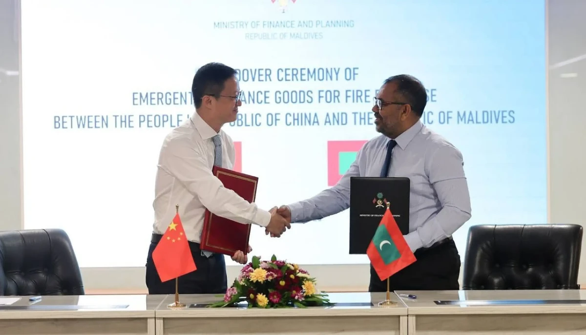 A handover ceremony was held at the Ministry of Finance, where Finance Minister Moosa Zameer expressed gratitude to the Chinese government for its assistance.