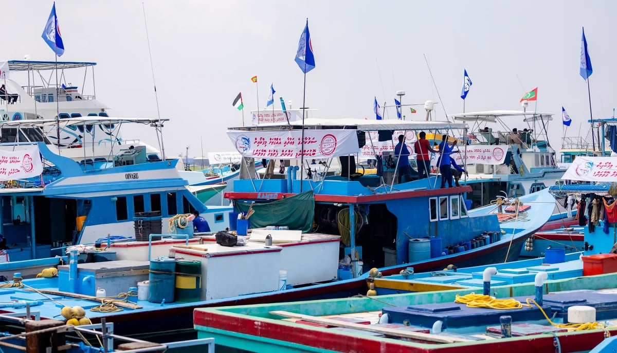 The protest fleet remained anchored between Malé and Dhoonidhoo near Jetty No. 1 throughout Wednesday night.