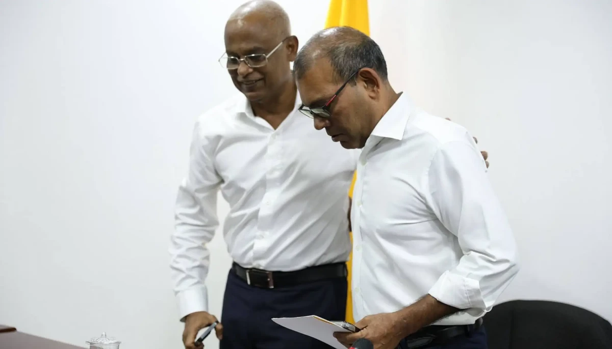 The two leaders met at the headquarters of the Maldivian Democratic Party (MDP) at G. Niusha, marking their first joint meeting since Nasheed lost the party’s presidential primary, left the MDP to form a separate party, and later rejoined the MDP following the 2023 presidential election defeat.