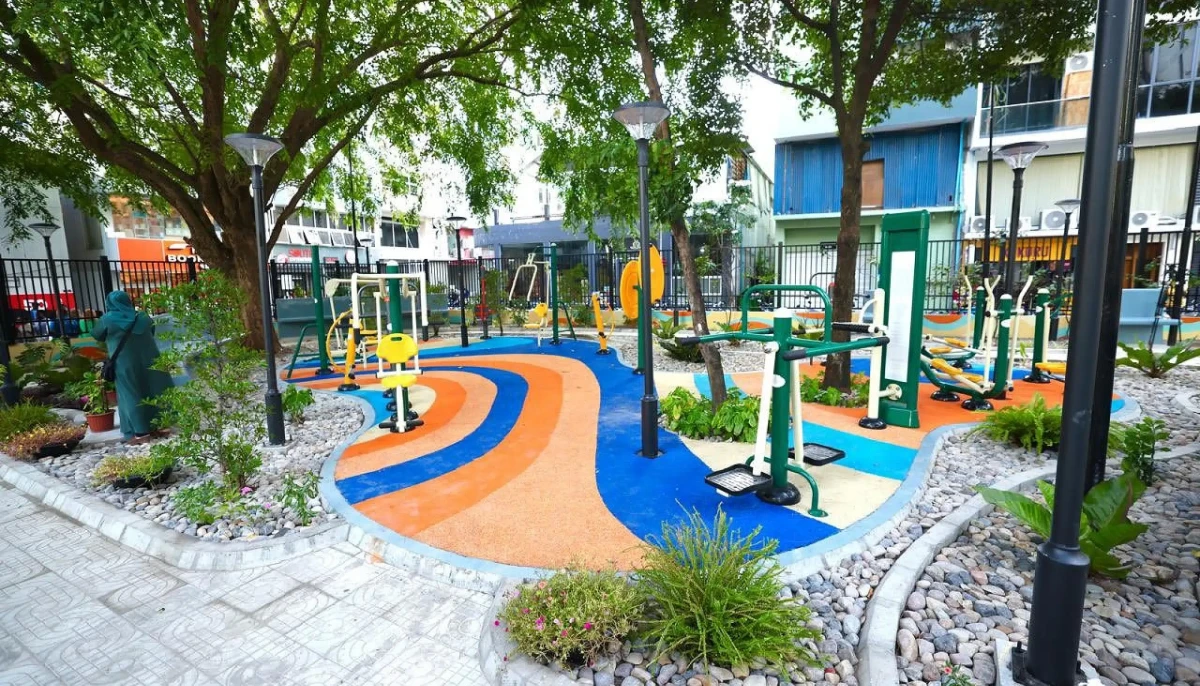 The park, located on Alikilegefaanu Magu, had previously been sealed off with metal sheets. Reconstruction works began in 2024.