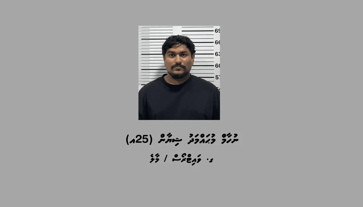 The suspect has been identified as Nuham Mohamed Shiyan, 25, of Whiterose, Malé.