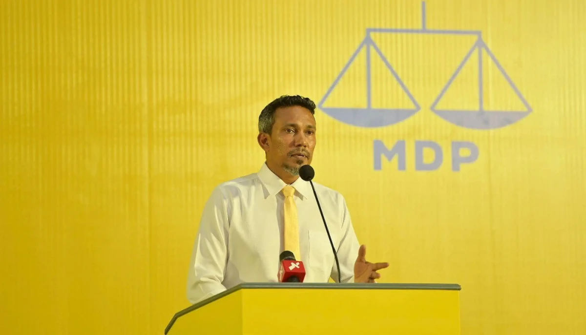 Mayor Ismail Rafeeq speaks at an MDP rally. (Photo/MDP)