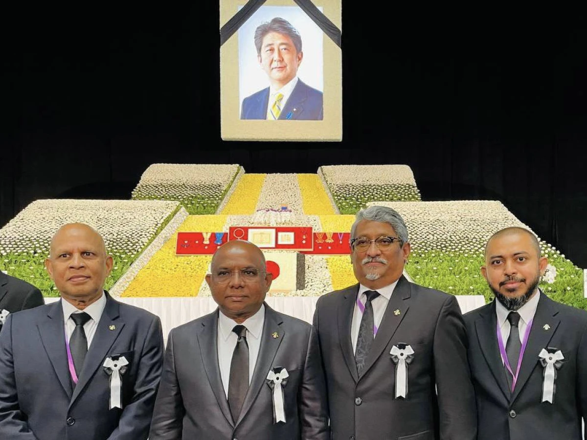 The foreign minister represented Maldives on behalf of President Ibrahim Mohamed Solih as his special envoy, at the funeral service held in Tokyo Tuesday morning.