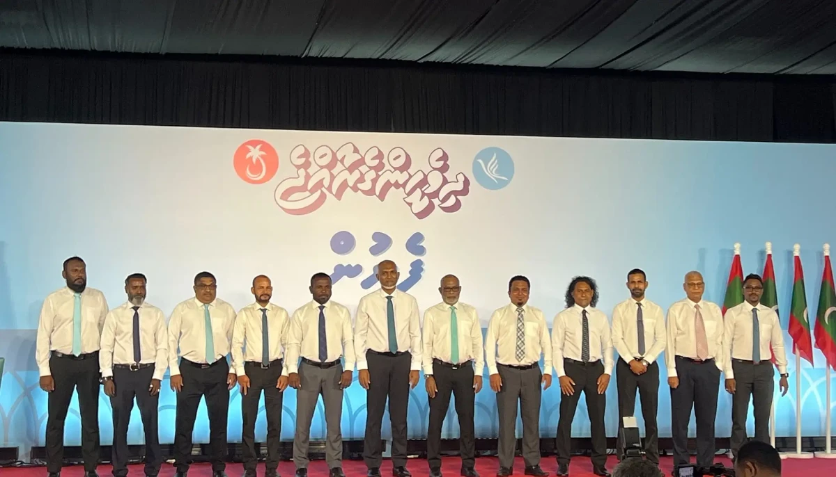 The MPs handed over the forms to President Mohamed Muizzu, who also serves as the PNC president, and the party's chairperson Abdul Raheem Abdullah during a ceremony held at Dharubaaruge Thursday evening.