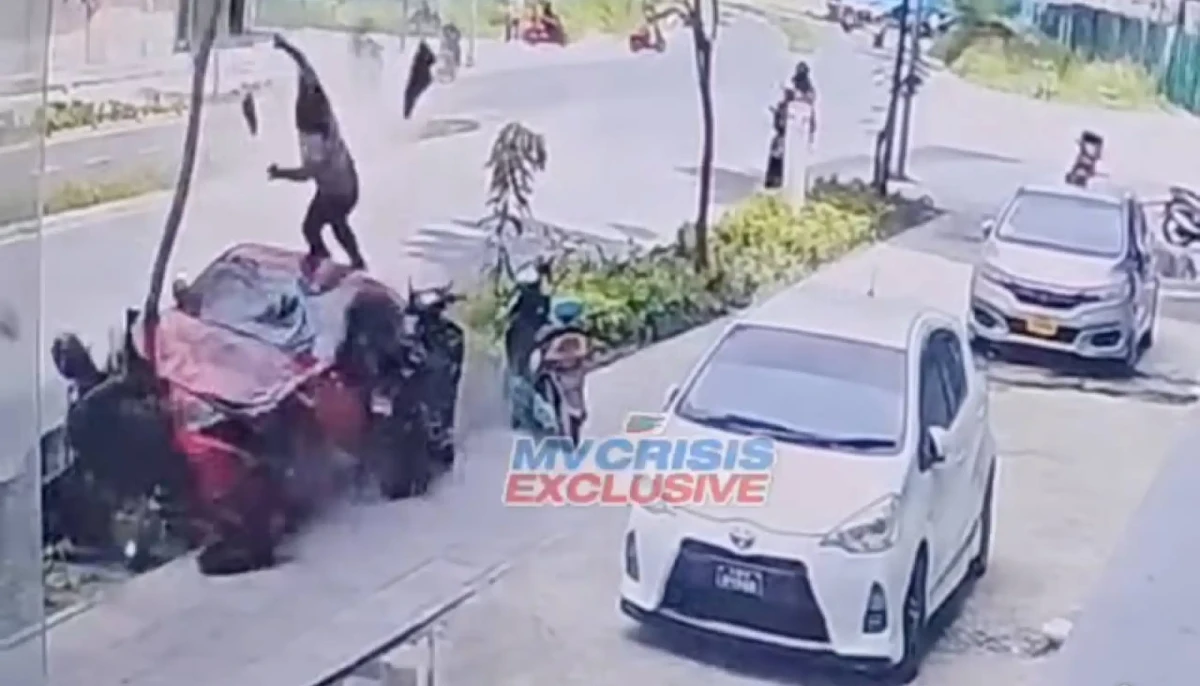 A man was seriously injured when he was hit by a speeding car while parked on the side of the road in Hulhumale Wednesday.