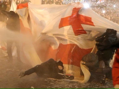 Georgians throw stones, petrol bombs at police in protest